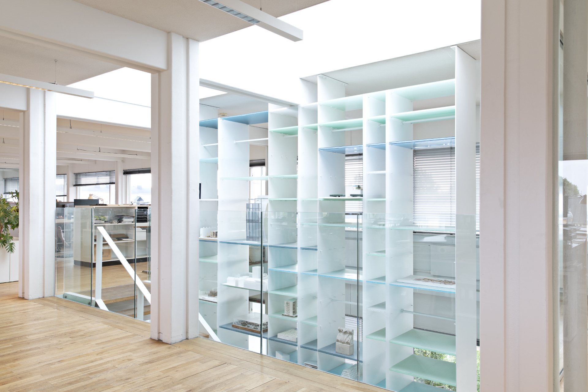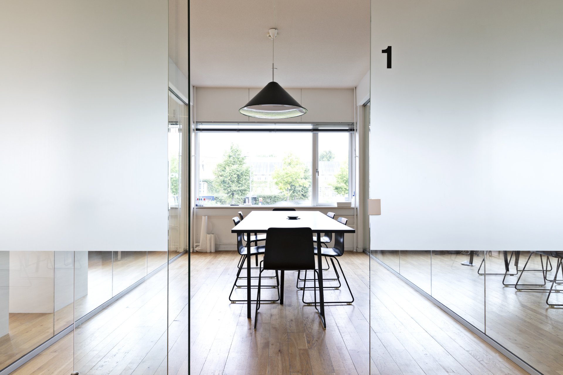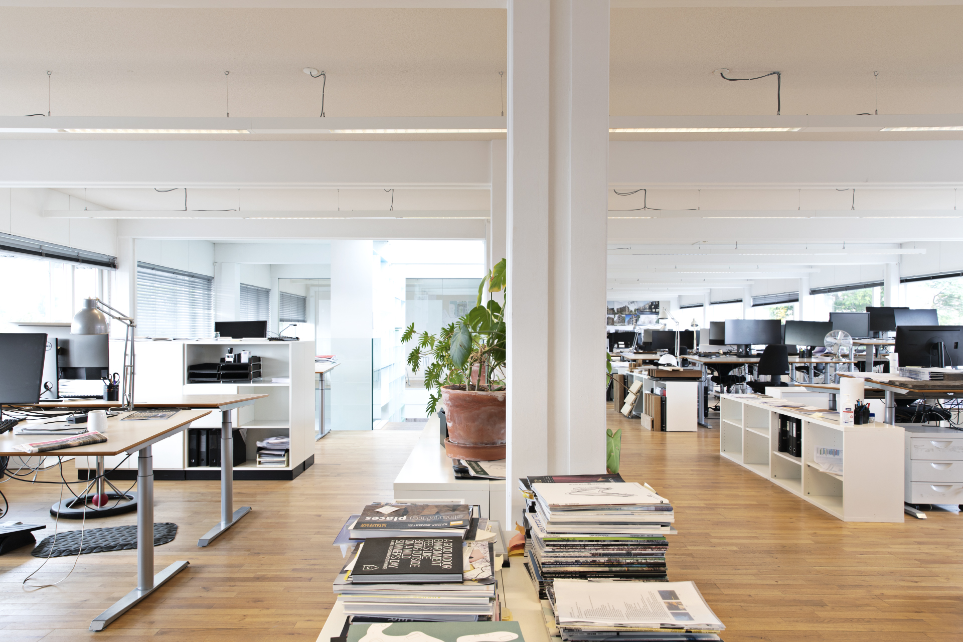 1. sal (398 m²) og 2. sal (402 m²) er indrettet med åbne kontormiljøer og aflukkede møderum. Her er udsigt til Kuglegården, Operaen og områdets skønne grønne områder.