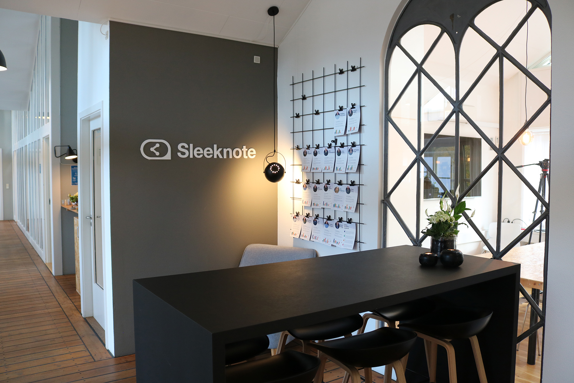 Sleeknotes hovedsæde strækker sig over 320 kvadratmeter. Førstesalen byder på mødelokaler og kontorer, hvor de ansatte er fordelt i teams. I stueplanet er er der sofaområde og videostudie. Vi har bevidst fravalgt et stort fælles kontor, da vi vægter fordybelsen i arbejdet højt. Det er en del af virksomhedens kultur,« fortæller Mogens Møller.