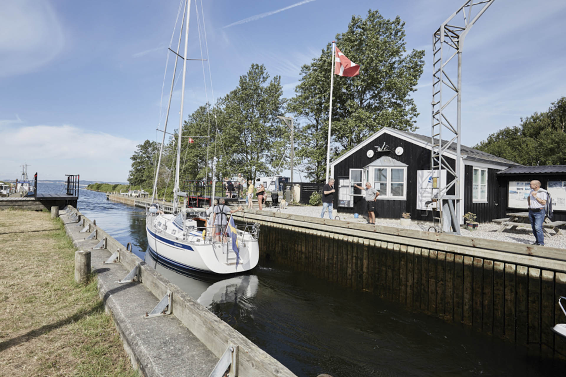 Lystbådehavnen er adskilt fra Ebeltoft Vig med en sluse.