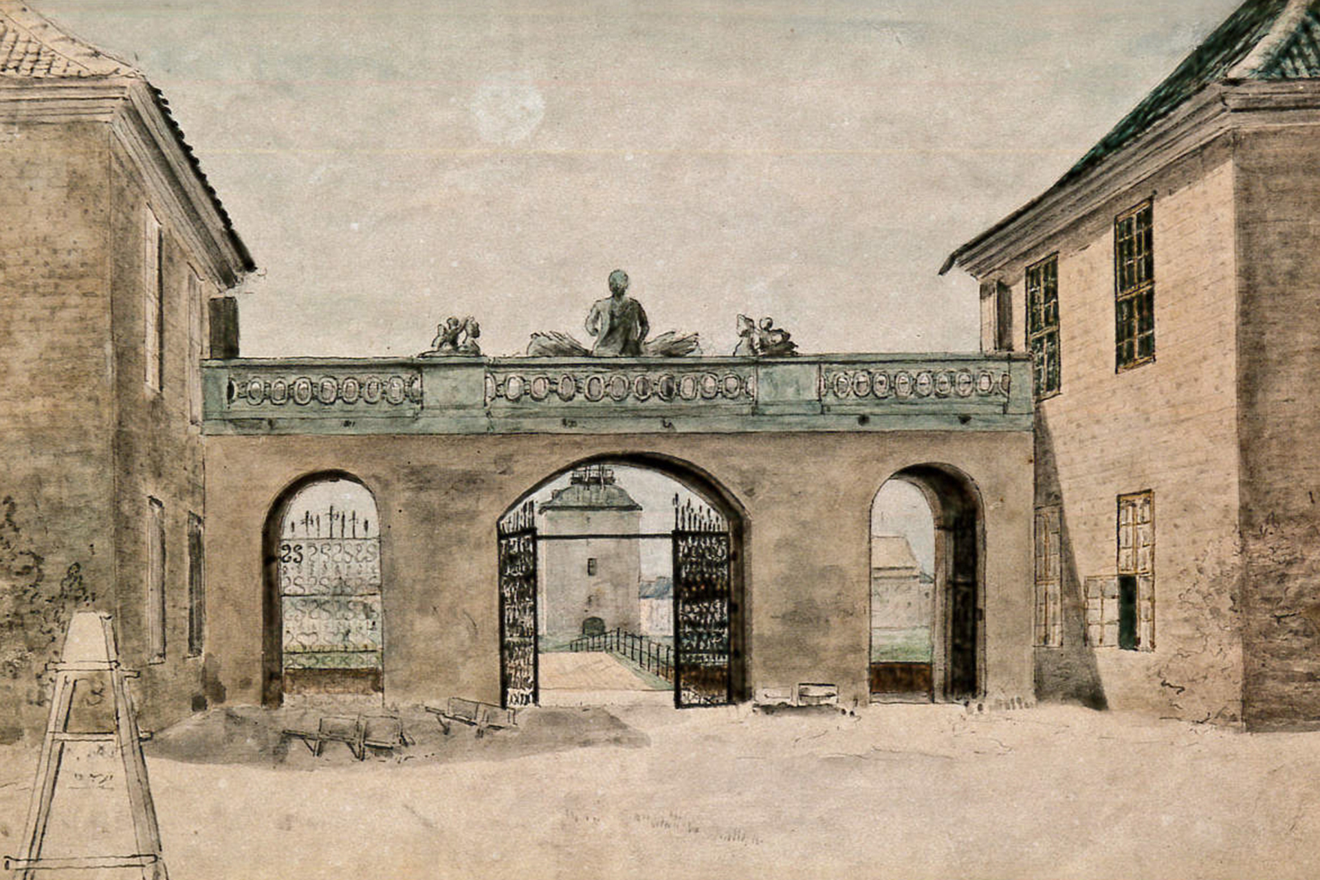 "Vi stødte på en akvarel, hvor man kan se udsigten fra Kuglegården gennem Kongeporten ud mod Christiansholm, i daglig tale kaldet Papirøen. Der kan man se en mastekran magen til den ikoniske mastekran ude på Nyholm. Min første reaktion var, at det er da historieforvanskning, det der! Den står da længere ude på Nyholm! Men nej, den er god nok; der stod også én her ved Kuglegården. Der findes faktisk fotografier, hvor man kan se begge mastekraner. Og i forbindelse med Papirøen-projektet er der lavet nogle meget omfattende arkæologiske undersøgelser derude, hvor de har fritlagt det gamle fundament til mastekranen. Jeg har selv været ude og se det," siger Lars Kirkeby med slet skjult begejstring.